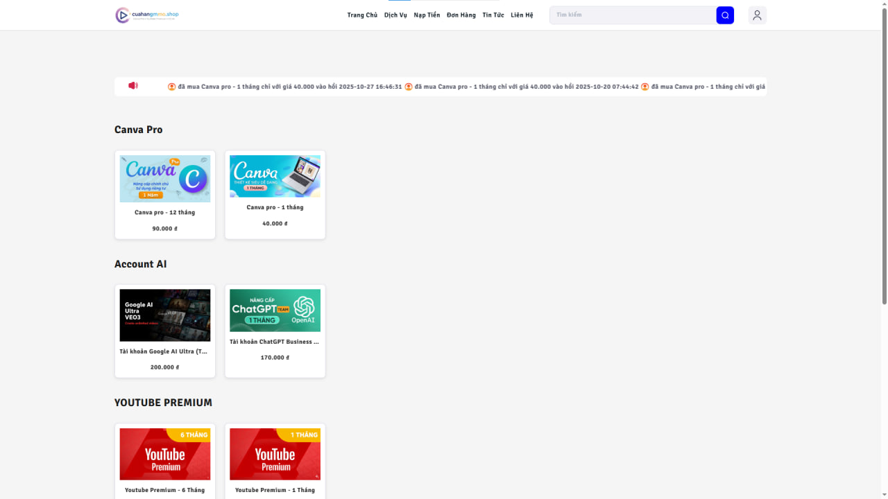 Code Bán Tài Khoản Mmo Canva YouTube v.v...