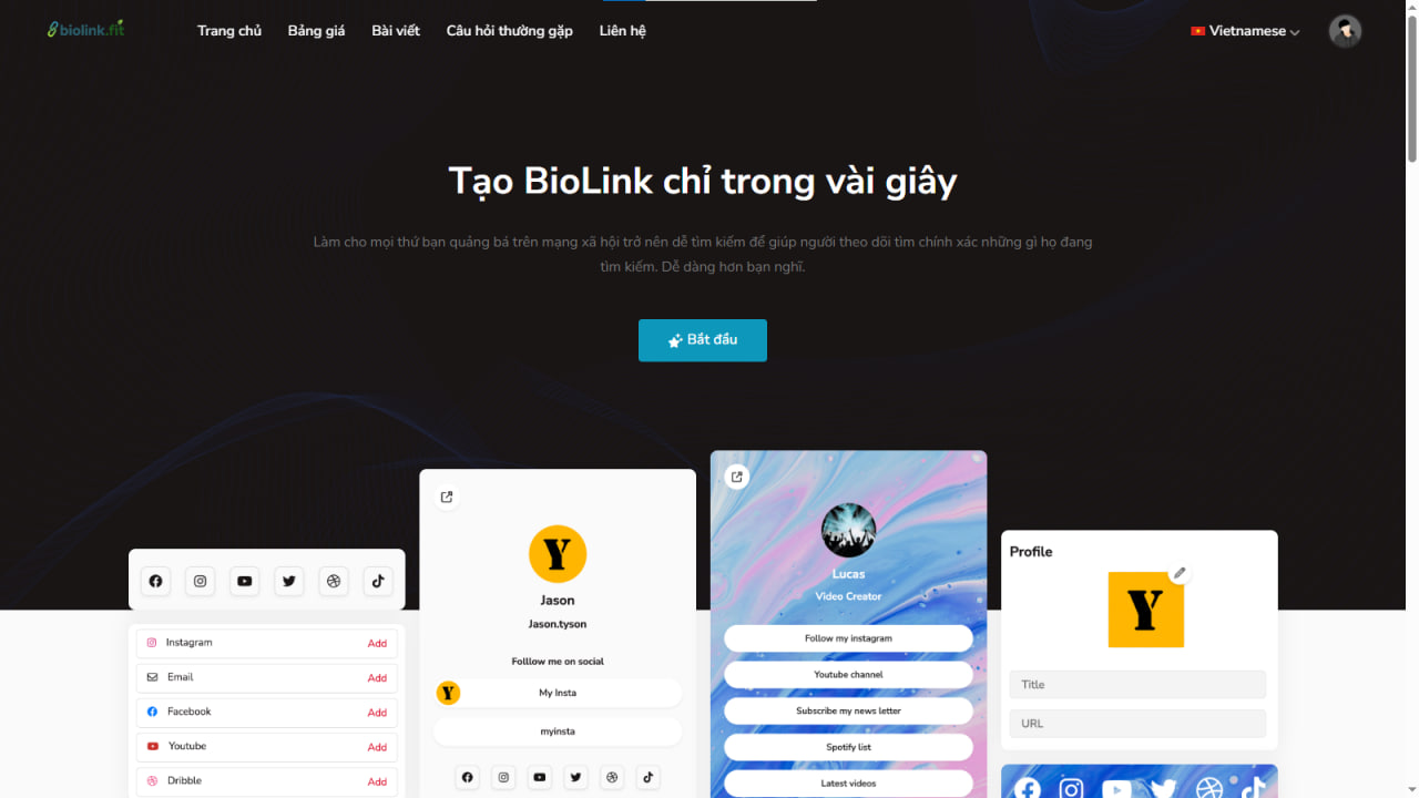 Giới thiệu : công cụ biolink trong tiểu sử tiên tiến nhất trên thị trường hiện nay. Không cần kiến thức lập trình, bạn có thể dễ dàng tạo trang web công khai hoặc riêng tư của riêng mình. Kết nối TikTok, Instagram, Twitter, trang web, cửa hàng, video, nhạc, podcast, sự kiện và nhiều hơn nữa. Một trang đích được thiết kế để chuyển đổi tất cả thông tin này thành liên kết trong tiểu sử. Bên cạnh thiết kế chuyên nghiệp và hiện đại, nó còn có mã chất lượng cao và bộ tính năng vượt trội.
