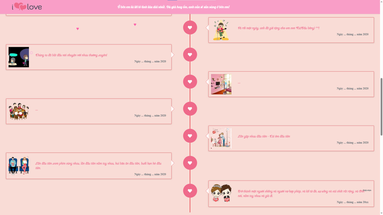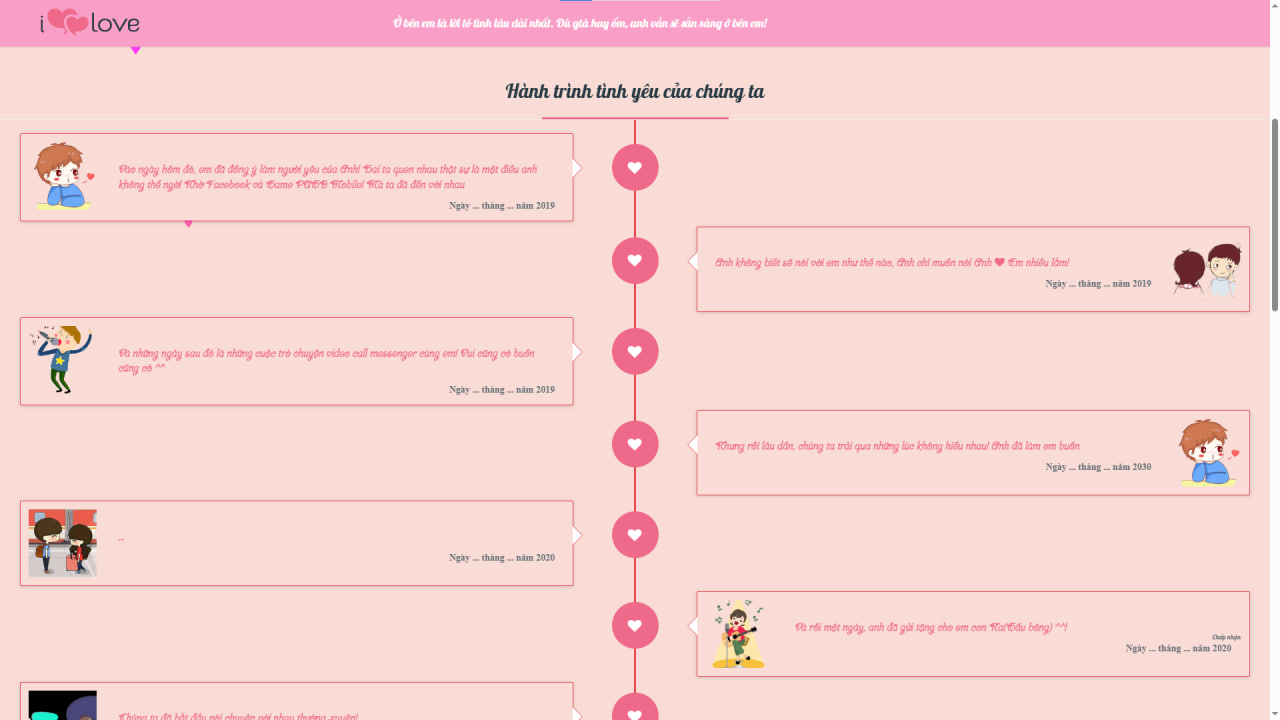 Theme này được thiết kế để ghi lại hành trình tình yêu giữa hai người, lưu trữ kỷ niệm, hình ảnh, thông điệp, ngày đặc biệt, và các mốc quan trọng trong mối quan hệ. Đây là theme cá nhân, dễ tùy chỉnh và chia sẻ.
